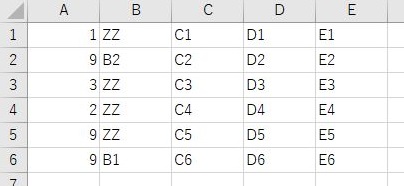 ●セルのソート(範囲:A~E列、キー:B列/昇順・A列/降順・E列/降順)