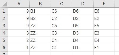 ●セルのソート(範囲:A~E列、キー:A列/昇順、ヘッダあり)