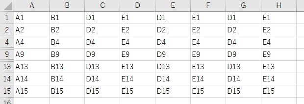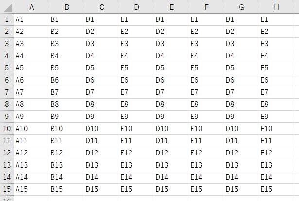 'B~E列を非表示にする(Columns)