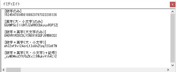 数字、英字(大文字・小文字)、記号から指定した文字数のランダムな文字列を作成します。