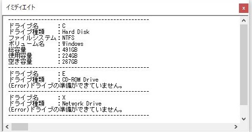 ドライブの種類、総容量、空き容量などを取得する。