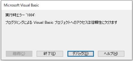エラーが発生する原因としては、Officeにはユーザがアクセスを許可することを選択しない限り、VBA オブジェクトへのプログラムによるアクセスを意図的に拒否するセキュリティオプションがありデフォルトではアクセスは拒否の設定となっています。