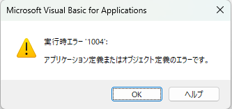 「’VBE’メソッドは失敗しました’_application’オブジェクト」のエラーメッセージが表示された場合の対処方法です。
