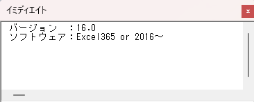 Debug.Print "バージョン :" & sVersion