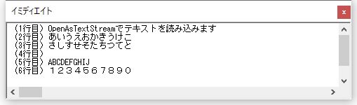 Debug.Print "(" & oStream.Line & "行目)" & oStream.ReadLine