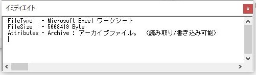 FileSystemObjectのGetFileメソッドを利用して指定のファイルの種類、サイズ、属性を取得することができます。