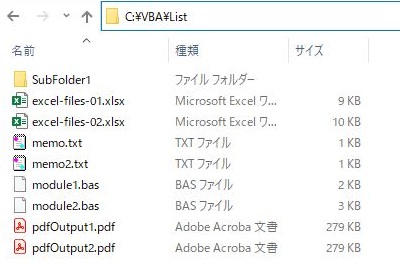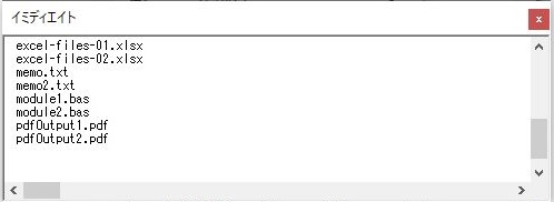 ※実行結果はFileSystemObjectで取得した一覧と同じ結果になります。