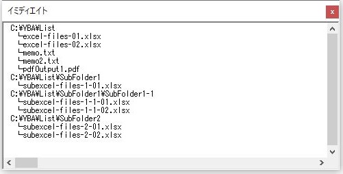 VBAで指定したフォルダ内にあるすべてのフォルダとファイル名の一覧をソートした状態で取得します。