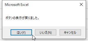 Call MsgBox("ボタンの表示が戻りました。", vbYesNoCancel) '実行結果④