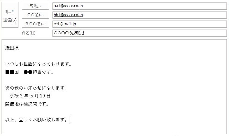 複数の送信先に異なる本文のメールを一斉に送信する。