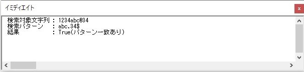 Debug.Print "結果 : " & bResult & "(パターン一致あり)"