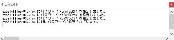 またブックに設定されたパスワードをイミディエイトウィンドウにブックに設定したパスワードを表示しています。