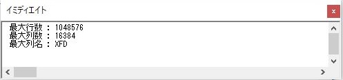 ●Ecxelで扱える最終行数と列数(列名)を取得