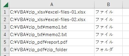 下記のサンプルコードではシートに記載された複数のフォルダ、ファイルに対して圧縮処理を実行しています。