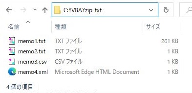 '「C:\VBA\zip_txt」フォルダ内のtxtファイルだけを圧縮指定